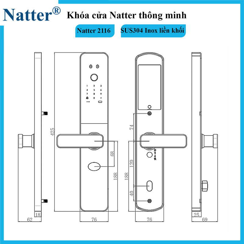 Khóa cửa Natter 2116 Full tính năng mở Face ID 4D có tạo mã qua App từ xa