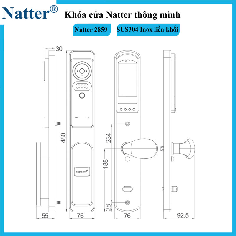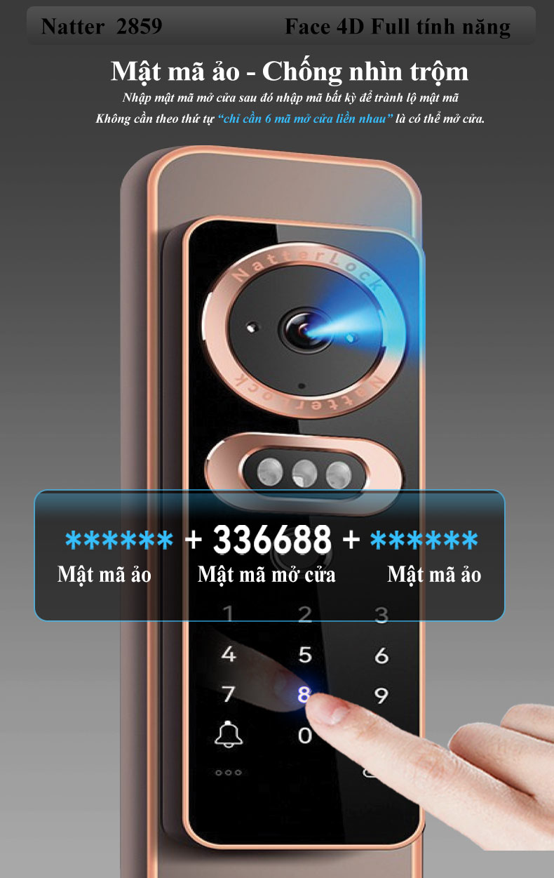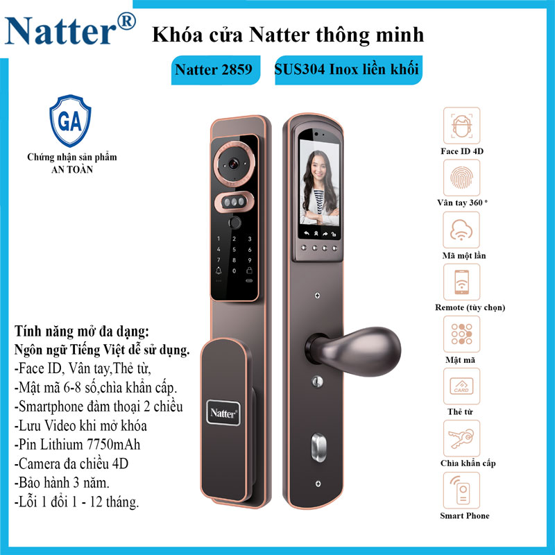 Khóa cửa Natter 2859 đàm thoại 2 chiều lưu video khi sử dụng