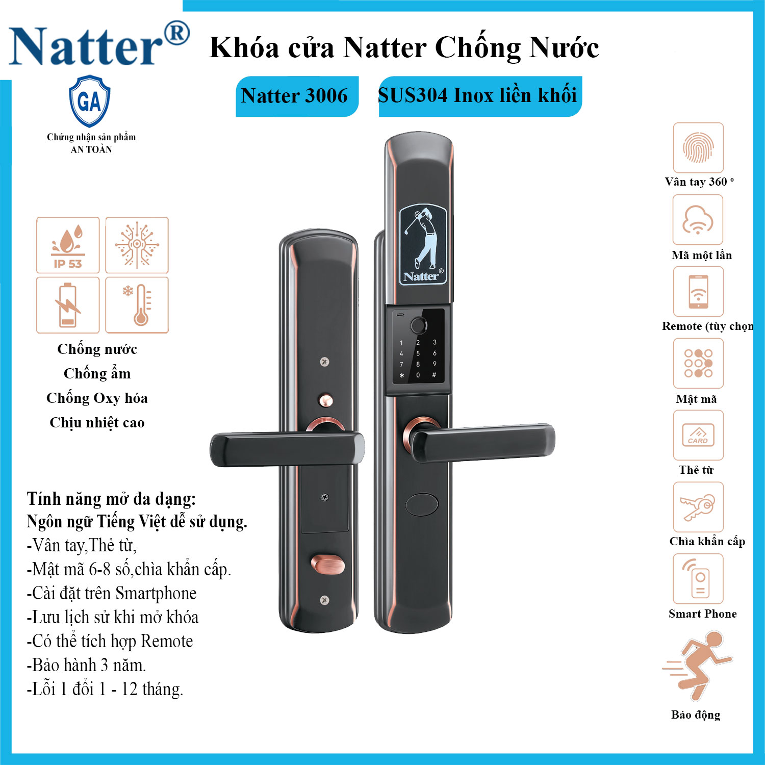 Review Khóa cửa Natter 3006 chống nước IP53 lắp cửa cổng cửa chính