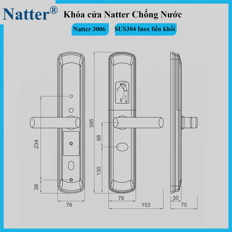 – Đặng biệt: Khóa cửa Natter 3006 thường dùng lắp cửa có nước mưa xối trực tiếp hoặc ánh nắng soi trực tiếp vào cửa.